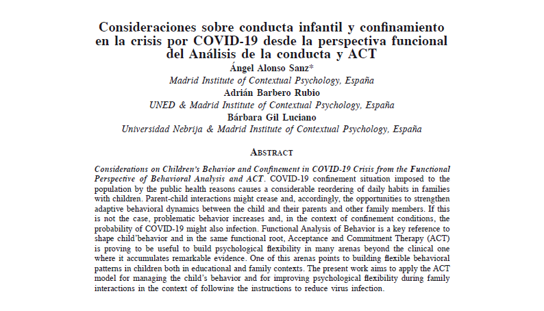 ACT y flexibilidad psicológica en niños durante una situación de confinamiento. Nuevo artículo